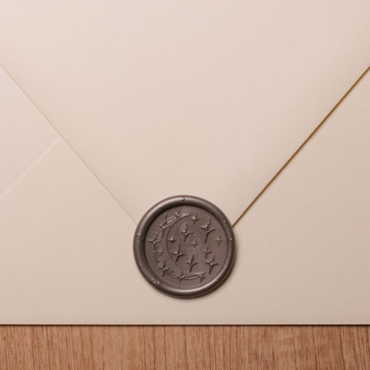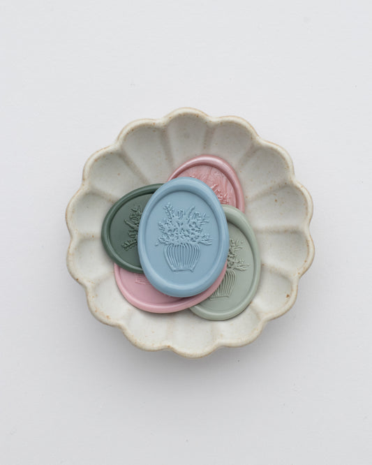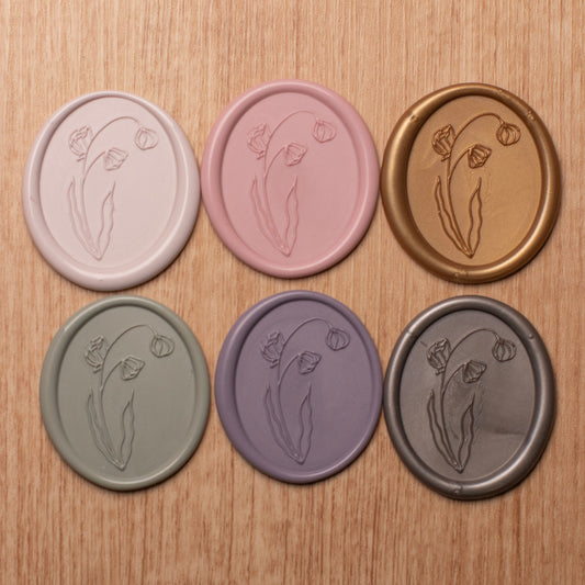 Our wax seals are individually hand-stamped and inspected in our studio using 100% brass stamps designed by yours truly.